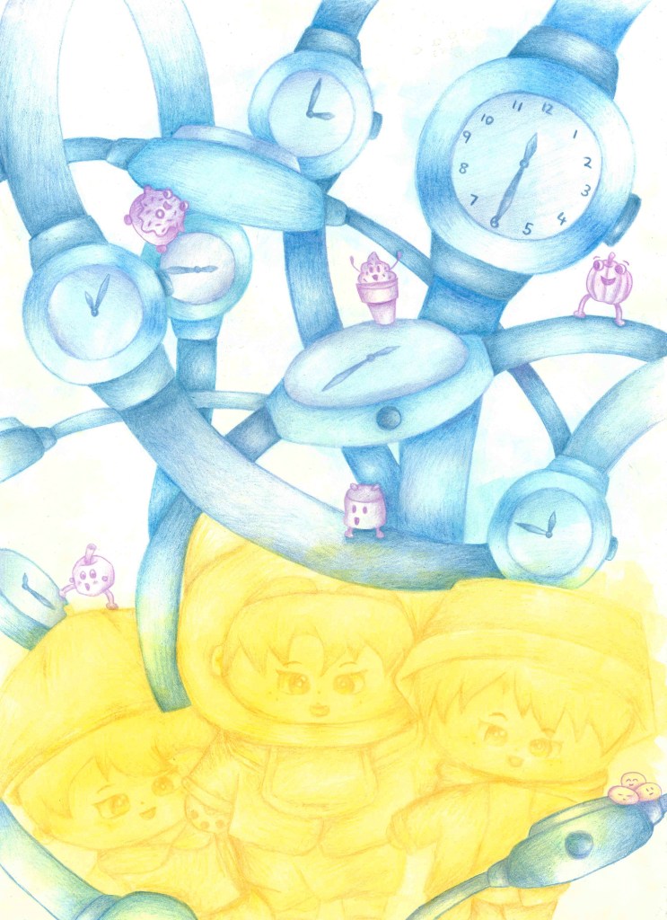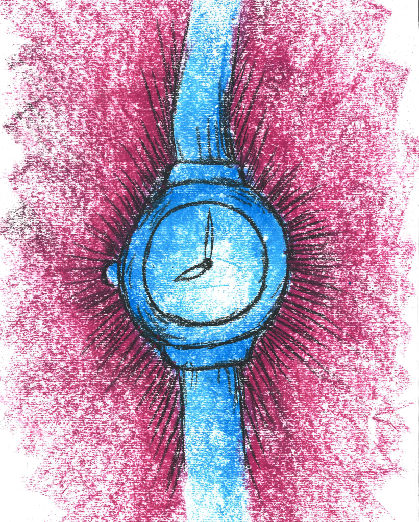 Here is my final image for this brief. I took ideas from all three roughs but mostly the first one as it was my favourite. I chose to use a simple colour palette, limiting it to purple, blue and yellow as these are my partners favourite. Each of the three elements is limited to 1 colour. I used water colour to add a subtle backdrop colour and coloured pencils to add in the details and tones.I think this piece is successful in portraying my partners personality through her sentimental objects. I’m happy with the vibrant colours I used and think it creates a fun and playful atmosphere.