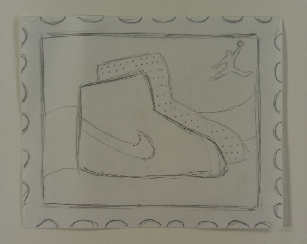 My group and I discussed different options for the subject of the stamps but eventually decided on sneaker culture as we all agreed it would be fun and had lots of ideas of how to illustrate them. We then talked about which sneakers to do and wanted to pick iconic silhouettes that would be easily recognisable such as converse, Air Force 1s, vans, doc martens and Jordan’s. We each where given a shoe to do, mine was the Jordan’s.