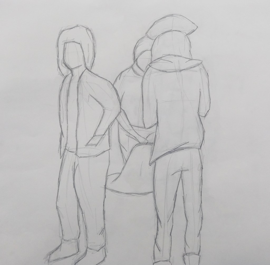 In my independent study I completed 3 figure drawing using the skills and strategies learnt in our session. I gave myself time limits of 15, 10 and 5 minutes to practice working fast and having abit longer for some to develop some details.