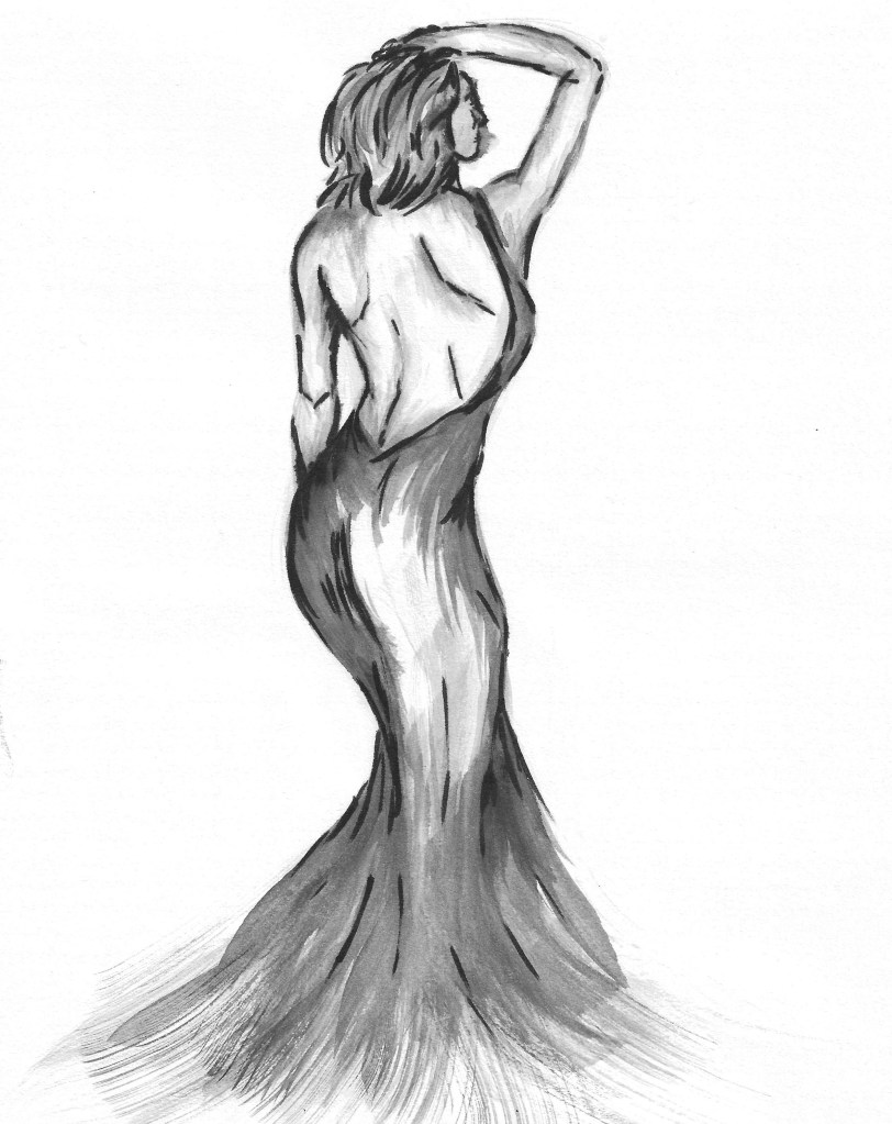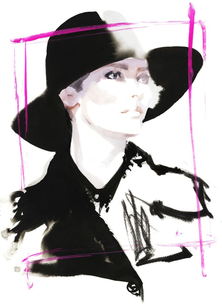 For our homework we had to create 3 fashion illustrations inspired by the work of David Downtown. I used black pens of 2 different thicknesses and black ink. Unlike in the session, I used water to dilute the ink to create different shades. This is something that I thought was successful. I used different brushed to get different strokes and marks. This is an example of David Downtown’s work.