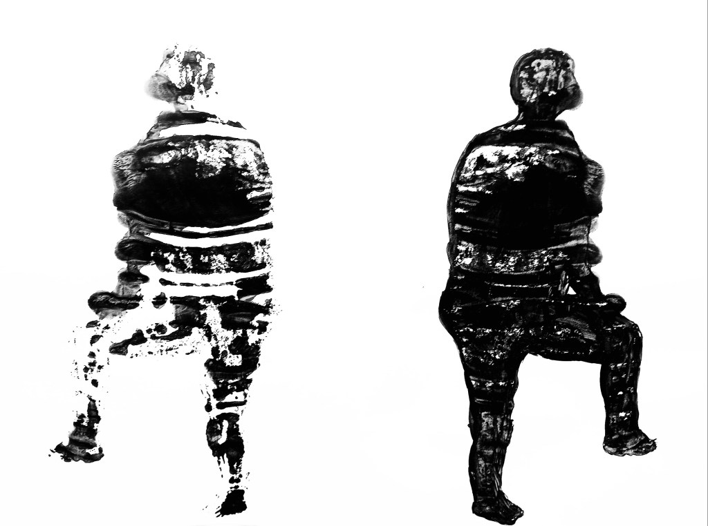 Just like the last task, for this we used black ink. We were given a time limit to sketch the outline of the model and fill it is with black ink. Then we had to fold the paper to make a print of it. I liked this task because it created an interesting print that showed a distorted figure.