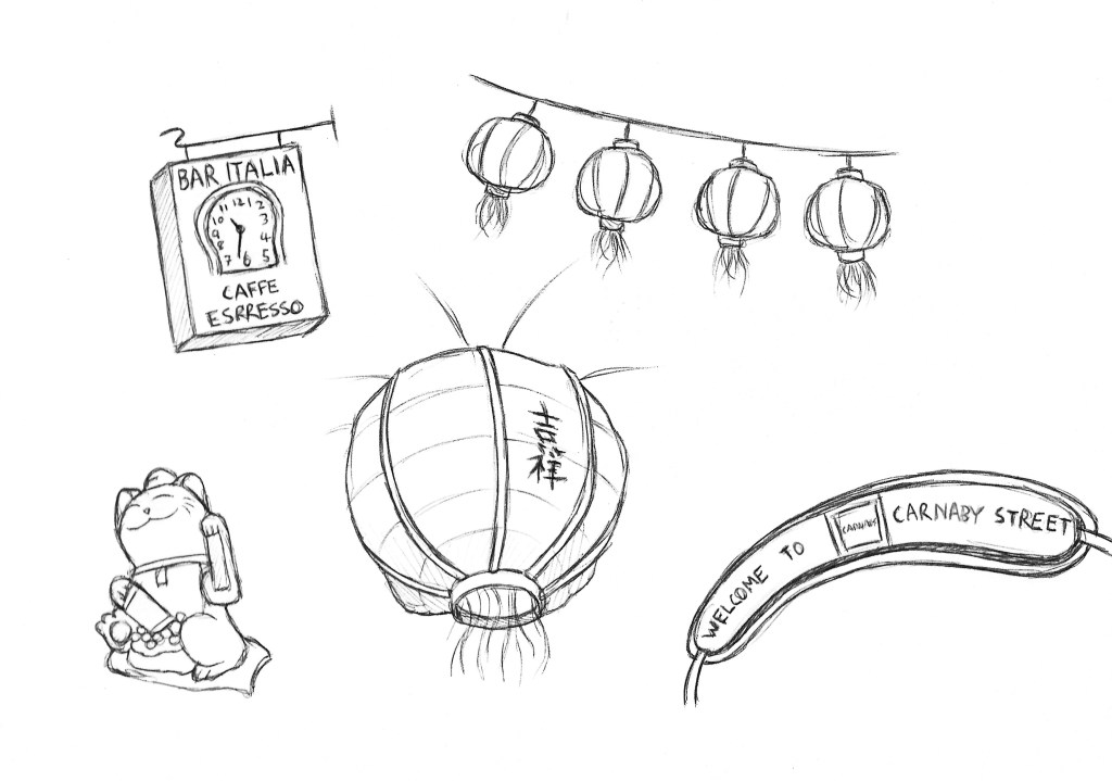 In the afternoon we had to go to the ares around the Photography gallery in London as document the communities. To the South and East of the Gallery there is China Town which is home to London’s largest Chinese community and east beyond that there is a large Italian Community centred around the famous Bar Italia. I wanted to expand my documentary illustration skills by looking at a combination of people, objects and buildings from the various locations. For my sketches I used pencils and biros as they’re medium I’m comfortable with even when having to work fast.