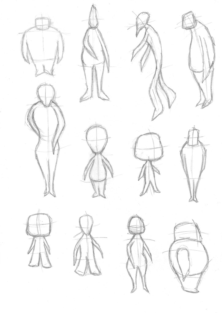 Then we moved onto creating figures out of shapes. I tried to caricature the figures by really exaggerating the proportions or certain body parts.
