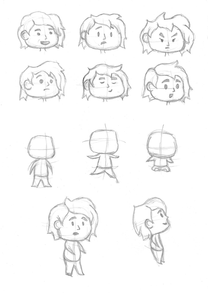 Then I started to develop one of the characters that I wanted to use in the comic strip (myself). I tested out different expressions, angles, and poses to begin to get an essence of the character.