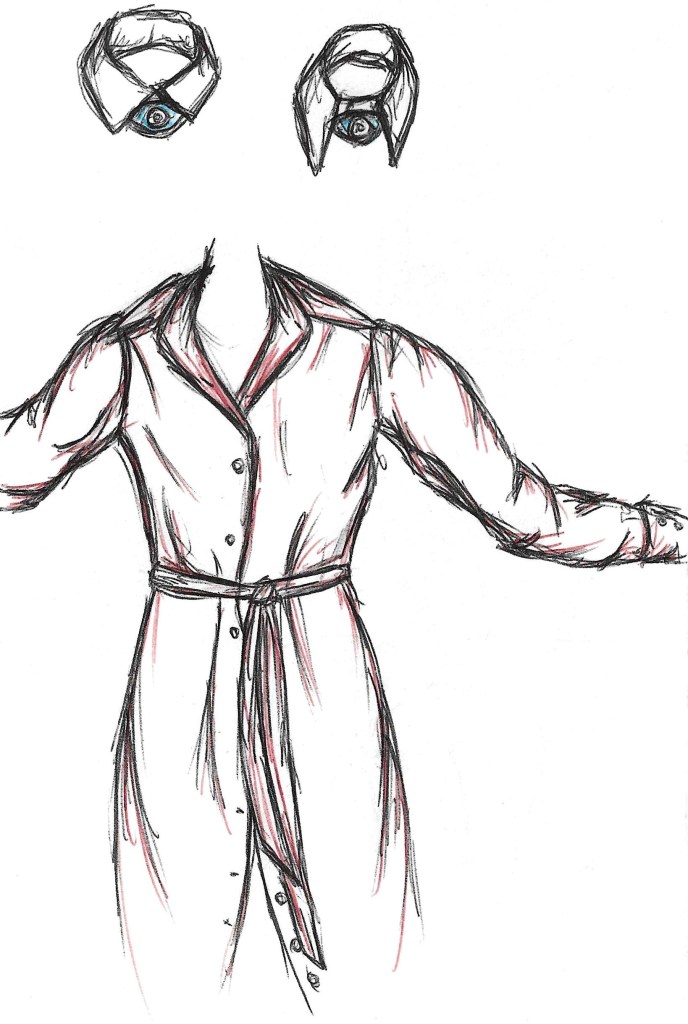 At the ‘Poets in Vogue’ exhibition we had to sketch a couple objects that interested us so I chose these collars with eyes in the middle and a dress. I loved the boldness of their colours and wanted to add a hint towards that by layering some of those colours over the black biro sketch.