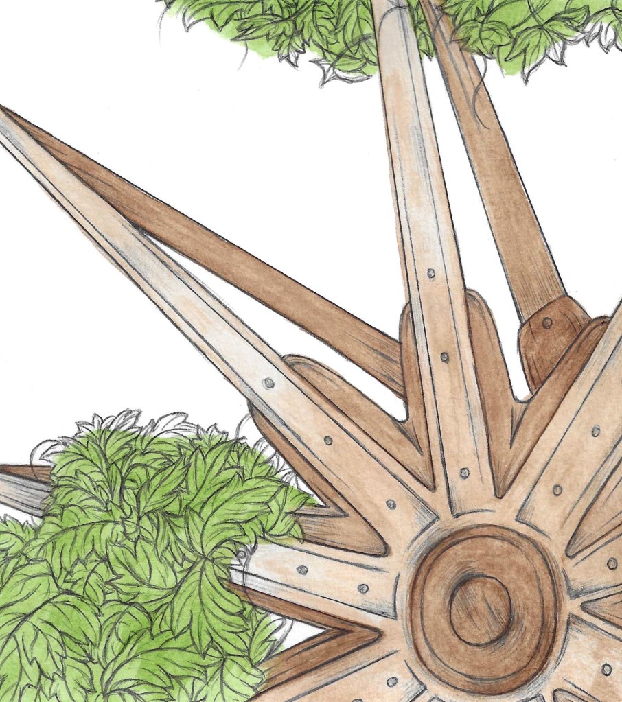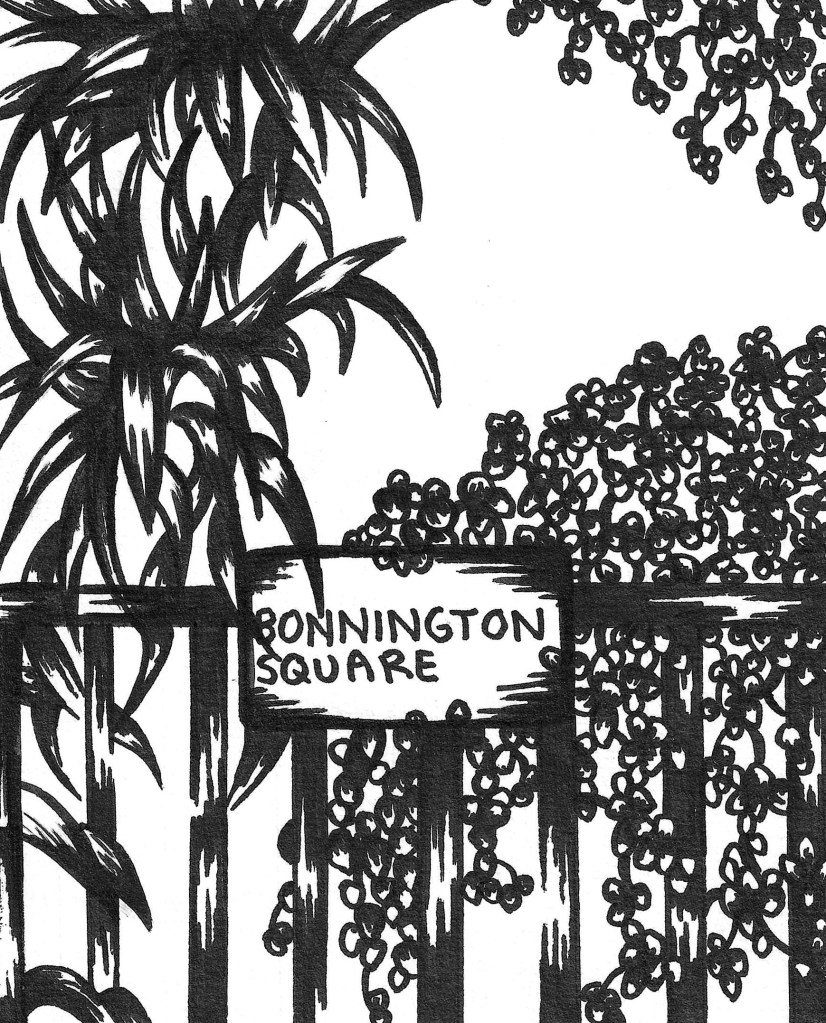 These are the 3 illustrations of the scenery in the Bonnington Gardens. The first one is a more refined combination of water colour and biro.