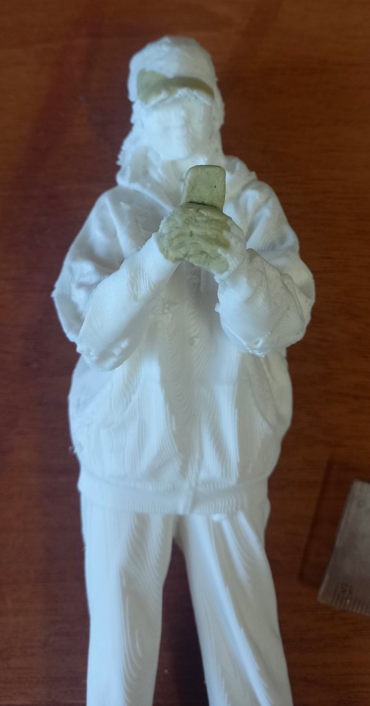 This one needed some holes in the cap filled in and her hands and phone. This was more tricky but I’m happy with the definition I got in the fingers