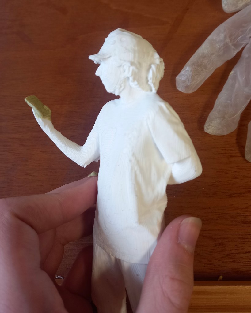 On the model on myself it needed a couple bits in the back filled in and the hand and phone. This was the most difficult as there was almost no hand printed so i had to construct it all.