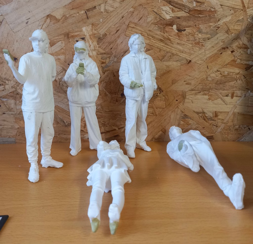 The first thing I did when I got the models was break off any big bits of plastic sticking out of the model using tweezers and scissors. Then I found the models that had printing error so I could fix them with the miliput. I had to mix the 2 parts in equal quantities for around 5 minutes. It softened up to become malleable and hardened again after a couple hours and was completely solid by the next day. There were 5 models that needed repairs in total this process took me around 3 hours. The first one I did was adding the heels onto this models shoes.