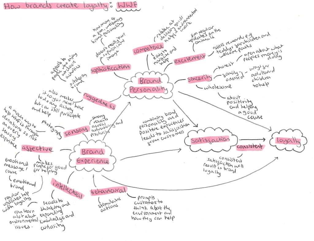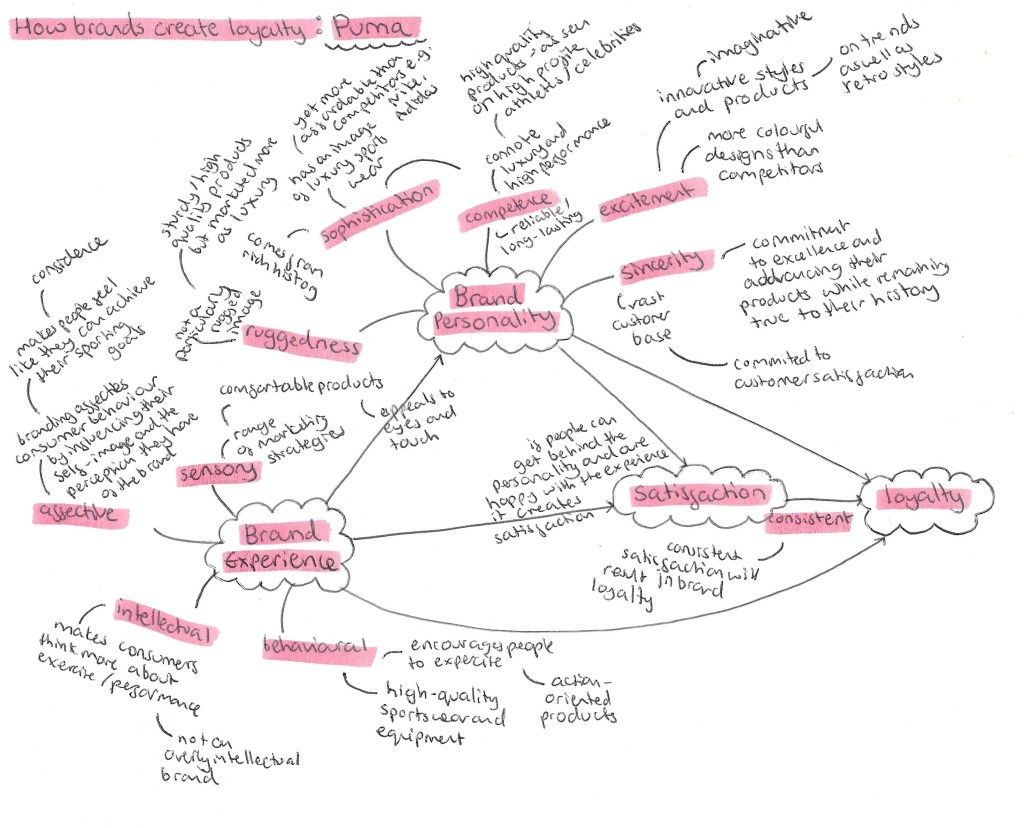 I used this model to explain how the 2 brands that I researched last week, Puma and WWF, are able to create brand loyalty. I used a combination of my knowledge from last week and additional research to explain each part.