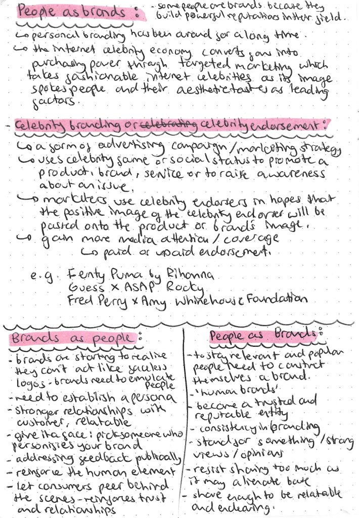 Also I did a bit of research into people as brands as this is a topic that interested me. I found out that this idea is broken into 2 sections, brands as people and people as brands. Brands as people is where brands establish a human persona to advance their sales and build a stronger relationship with the consumer. Whereas people as brands is where an individual needs to market themselves a brand in order to sell a product and advance their popularity. This ideas are seen all the time in celebrity culture.