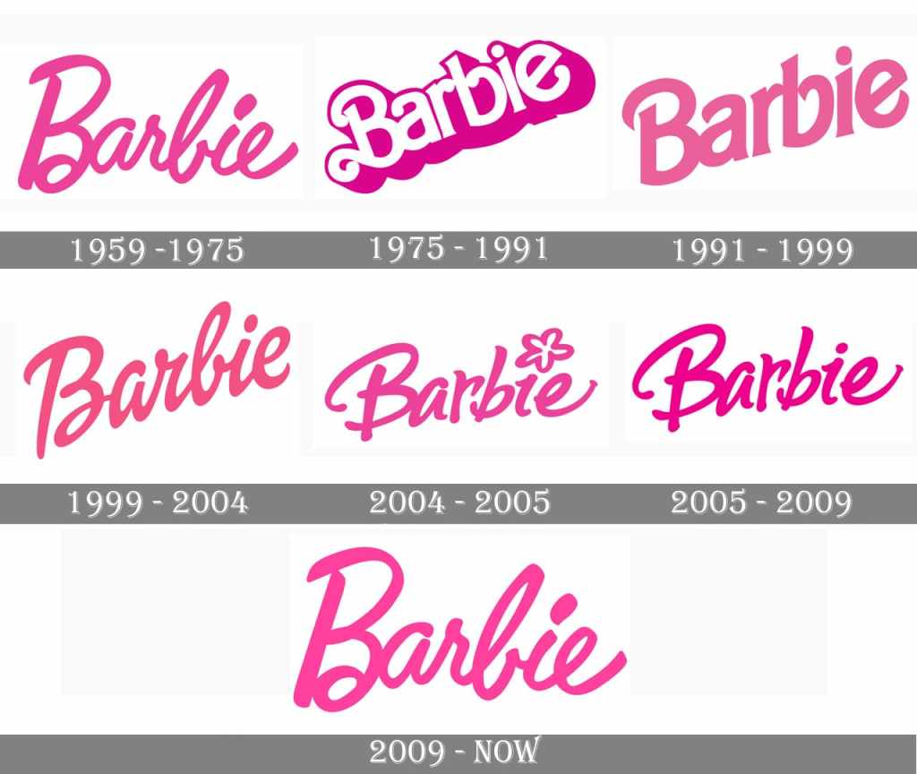 The evolution of the Barbie logo. Has remained similar in typeface and colour but the has been subtile change made.