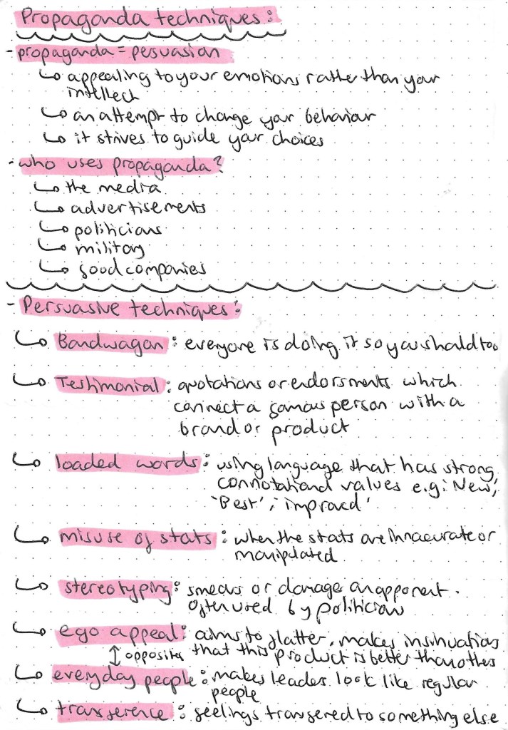 We looked at lots of different persuasive techniques used in propaganda and did an exercise where we had to identify which techniques are being used in different pieces of propaganda. There’s often lots of overlap between techniques and certain techniques lend themselves more to particular types of propaganda. Politicians often misuse statistics and use stereotyping and loaded words to push their campaign and bring down their opponents. For example testimonial and ego appeal are often paired to sell products from car and perfume brands.
