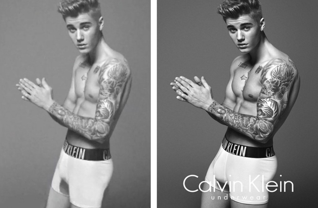 Since the invention of digital editing there has been an erosion of certainty, making it more difficult to tell what is real and what is edited. The main software used for this is Photoshop. This is seen regularly in advertising especially when working with models. Here is an example from a Calvin Klein advert. Many of Justin Biebers features have been digitally edited. This example is done well so it’s difficult to tell it has been edited, making it misleading and dishonest.