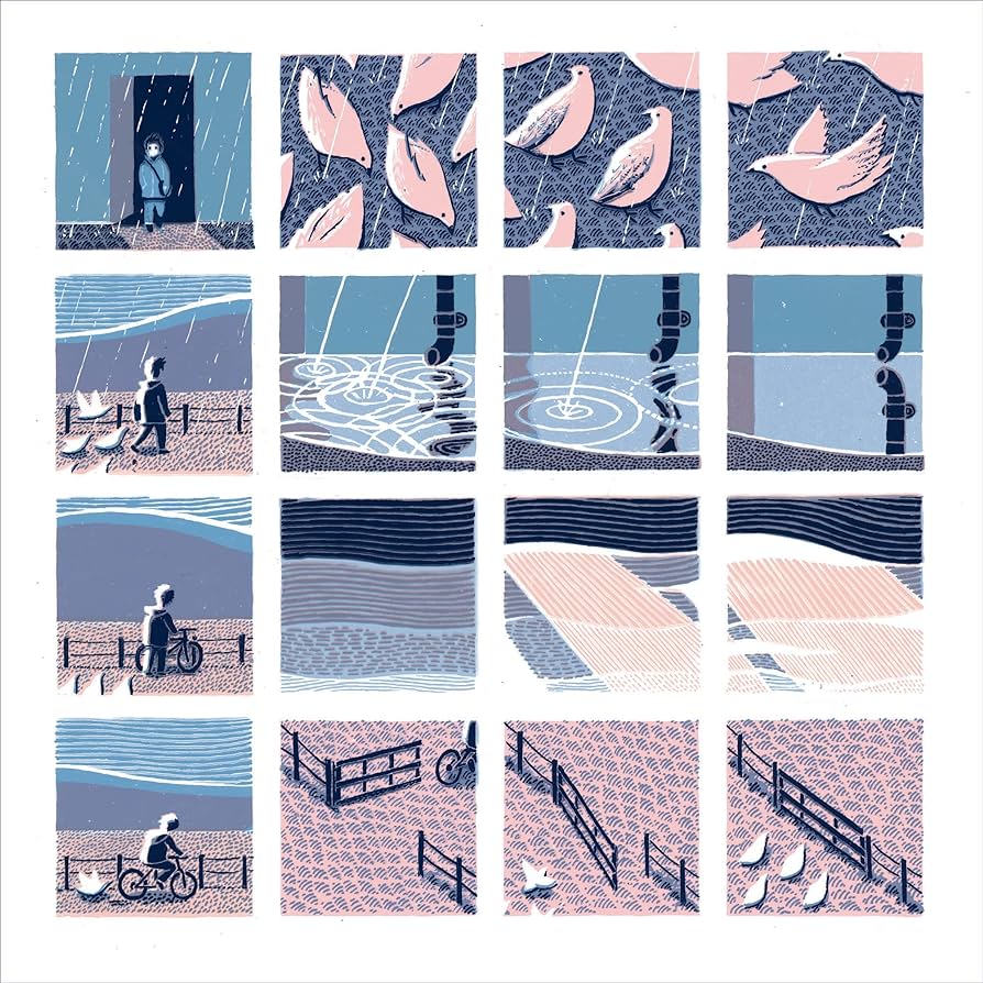 Another example of a wordless picture narrative is ‘Cormorance’ by Nick Hayes. This is the story of a girl and a boy and and a deserted reservoir. The girl wants only to impress her mother, and finds the perfect challenge to prove herself. The boy suffers a tragedy, becomes fixated with a lost memento and makes it his mission to find it. The water is where, one day, the two will meet. What I particularly like about this example is the strong use of colour. Hayes has picked a very simple colour palette of just 2 complementary colours, blue and orange. This helps create the mood of the piece and is a technique I will consider using.