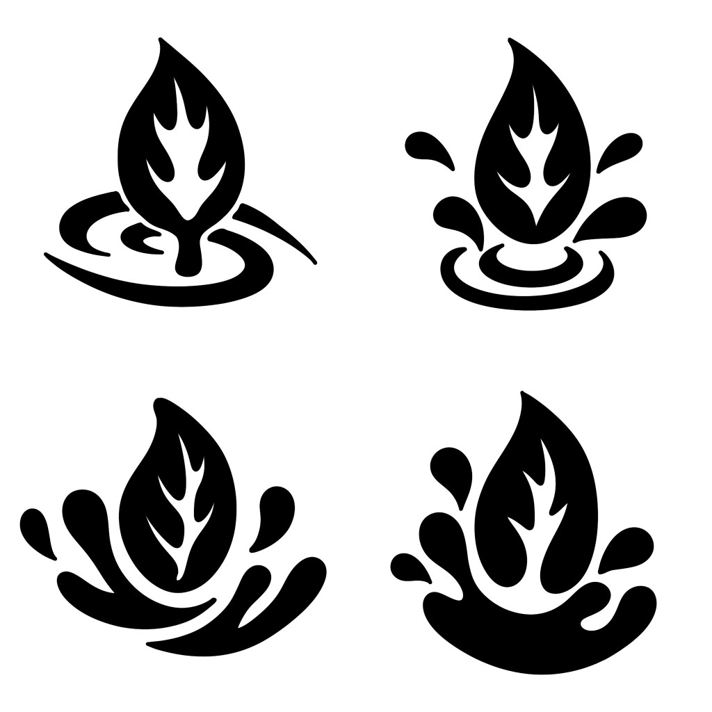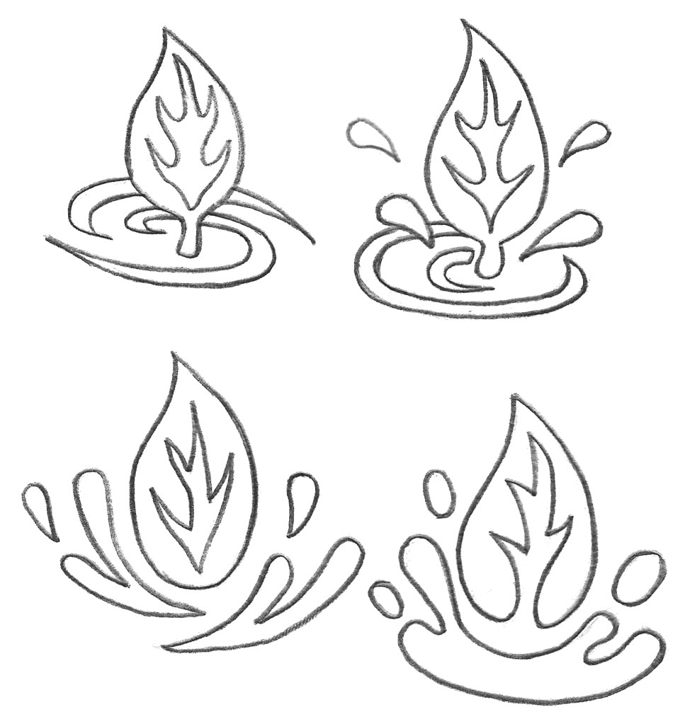 I did a few hand drawn sketches of logo redesign ideas. I wanted to keep the leaf and water as symbols in the logo but played around with the composition. This is an example of a pictorial logo which can also be combined with the brand name. I wanted to make the logo more dynamic so I tested different compositions.