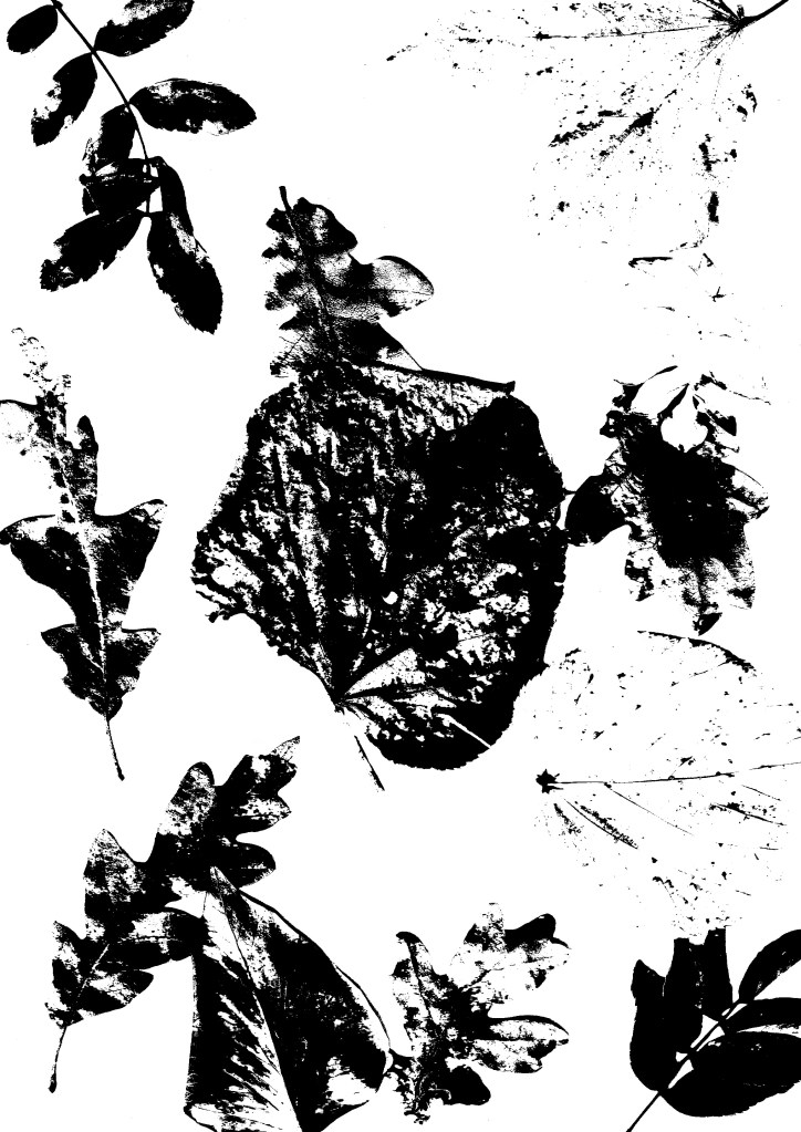 I used the printer scanner that I have at home to make a bunch of different compositions from the random assortment of leaves I collected. Some are with lots of leaves covering the whole area, some are in more organised placements such as the corners and others are focused on specific leaves. This gives me a range of images to edit and use.