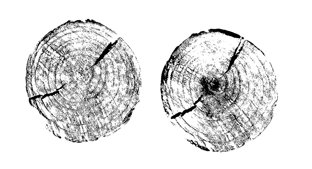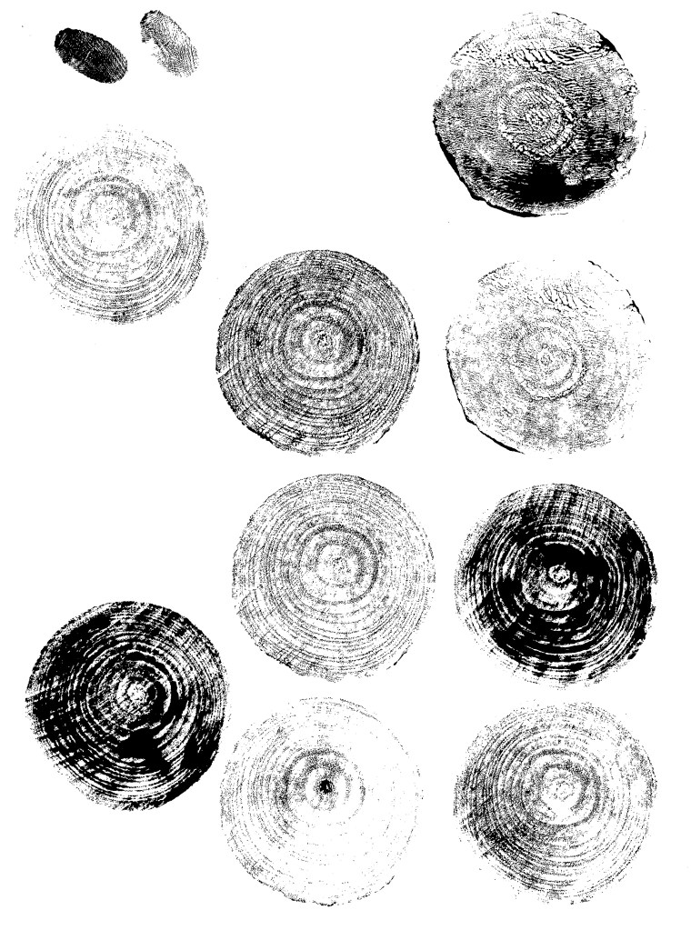 I also experimented with printing over wooden discs. Initially I tried using the same ink I used for the Lino prints but it was too thick so it didn’t print the fine textures of the grain. So I tried using black acrylic and that worked much better as it’s thinner so the prints came out much more detailed. In the same way I did with the Lino prints, I only printed them in black and will alter the colour digitally.