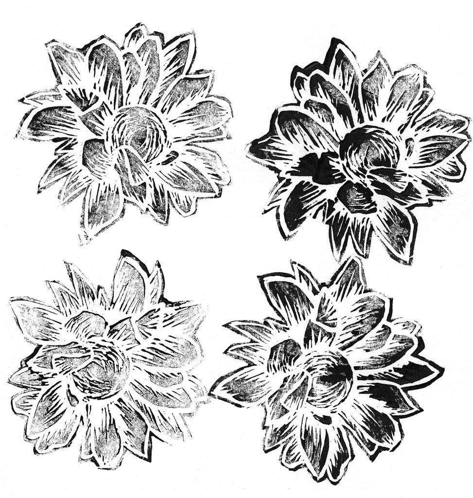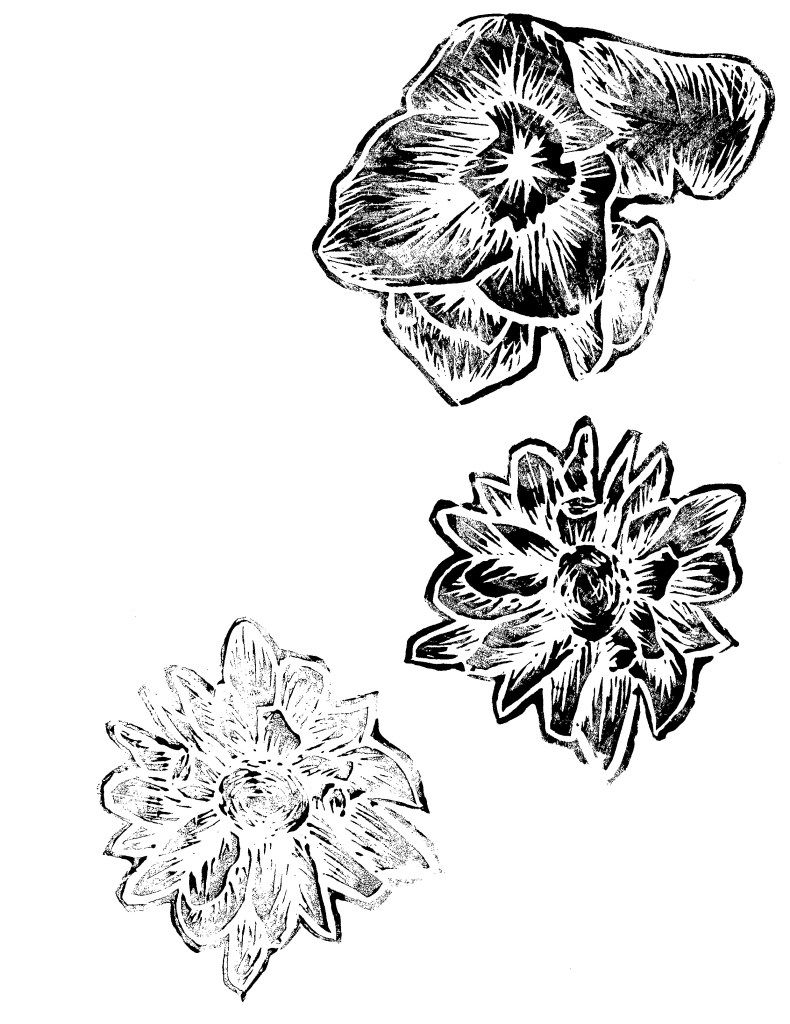 Lino printing is a technique that I have experimented with previously and I think it creates a really nice textured look. Using the printing facilities at the University I carved at series of floral Lino cuts. I chose a dynamic carving style to create lots of texture. From my previous experience I have found that this style produces the most bold and striking results. To save myself time I only printed in black ink, making sure to get some darker and some more faded prints with each design. I will later colour them digitally to align better with the campaign identity.