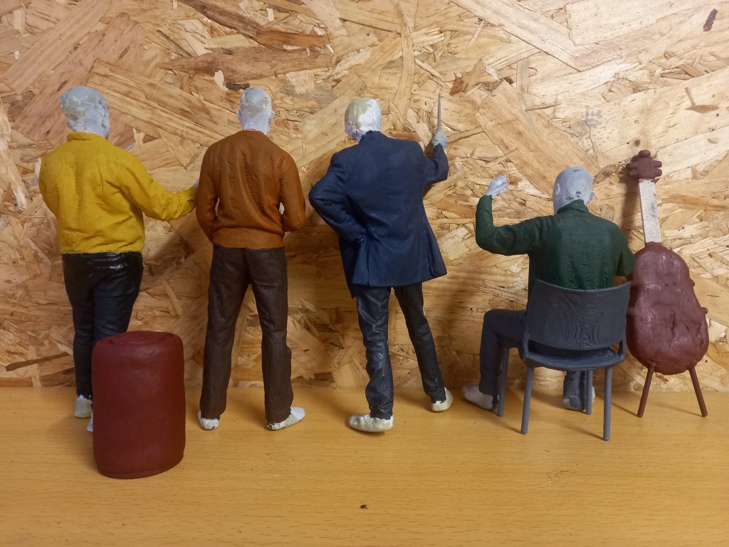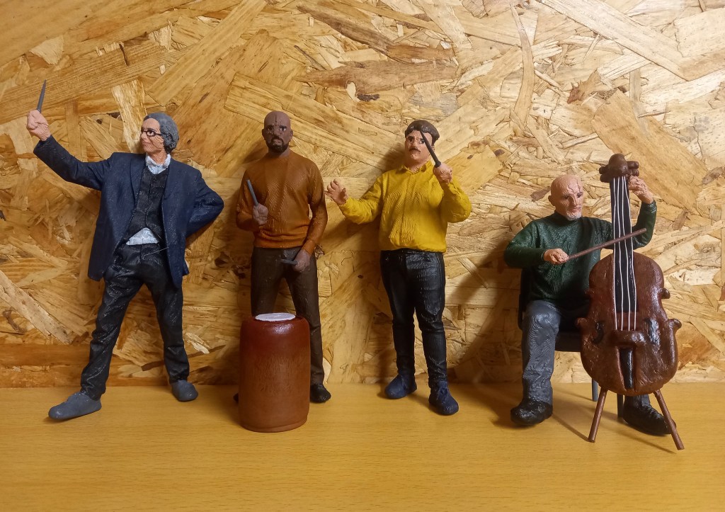 The next 4 images are close up shots of the completed figures, the cello player, conductor, drummer and Professor Pepper.