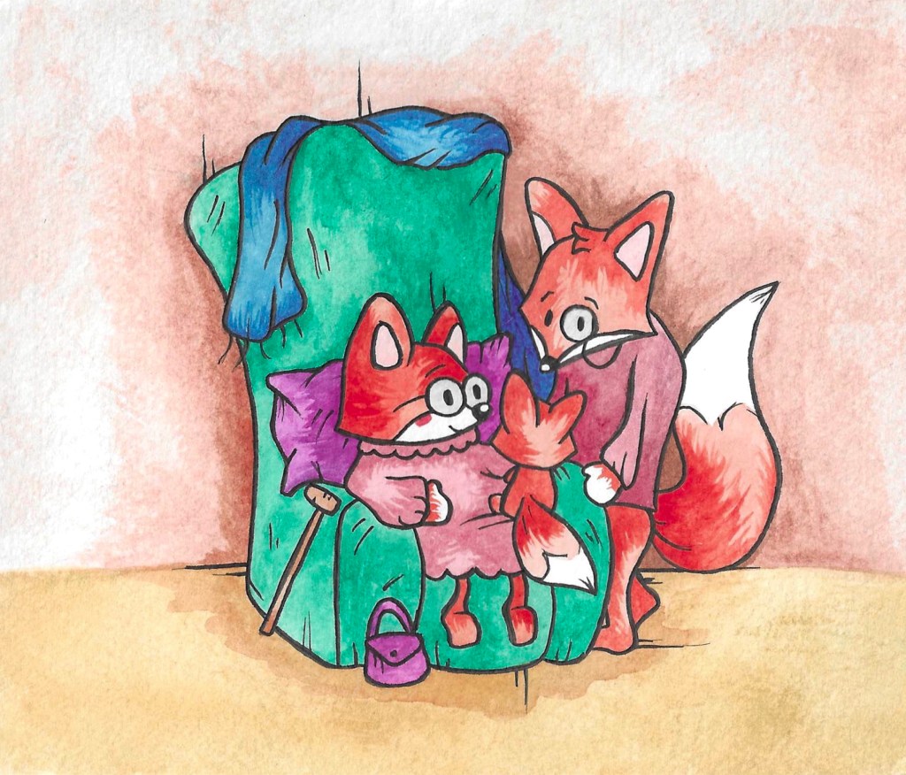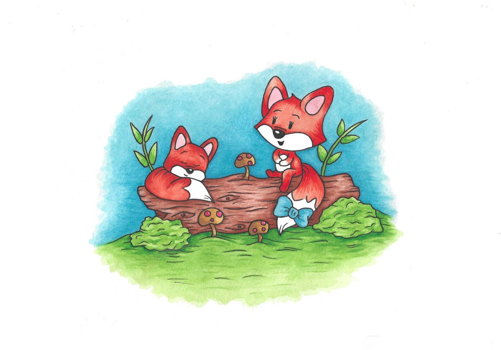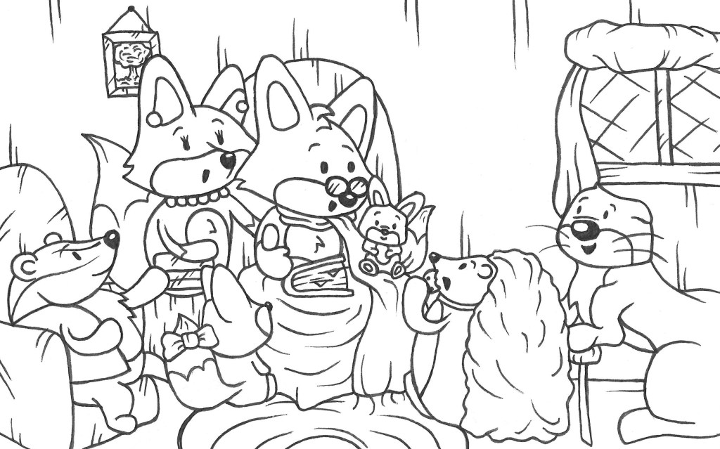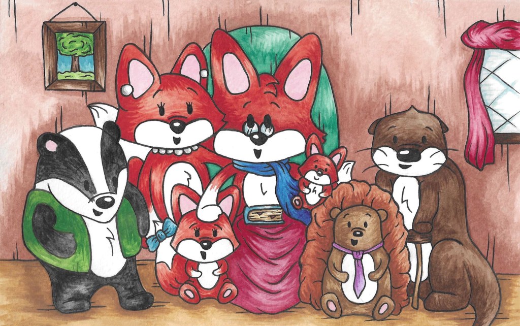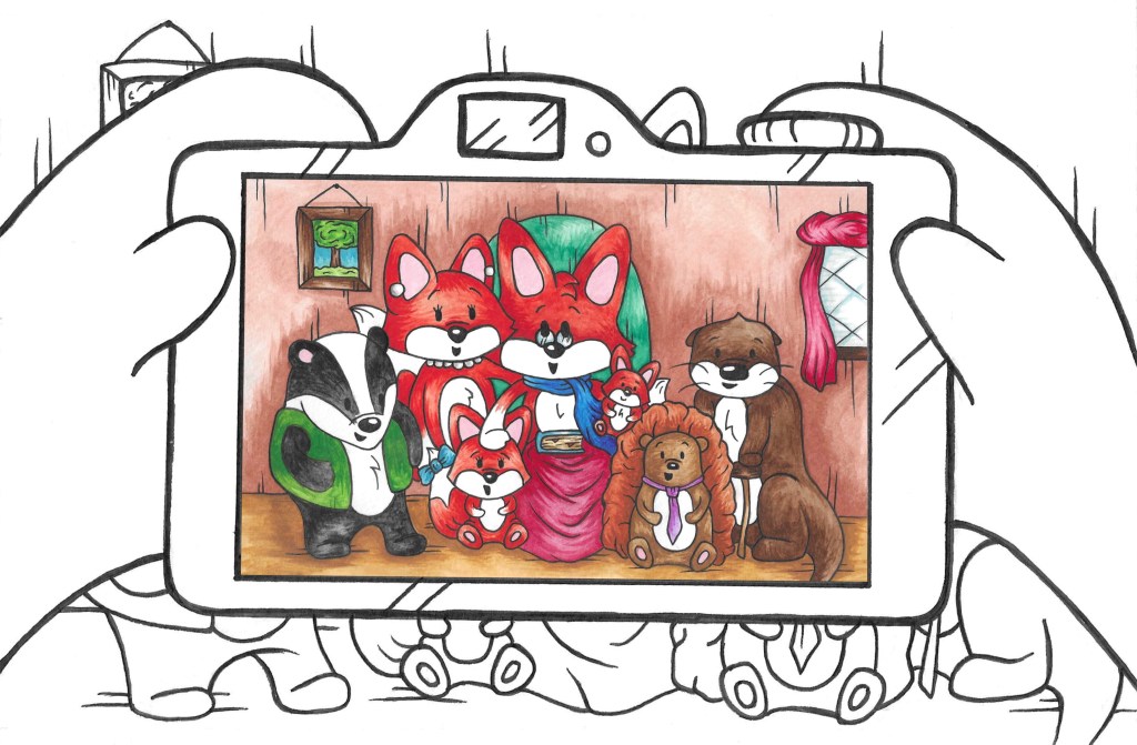 In summary the story is about an old fox who is with his family and friends and he shows them a photo album of his life. I worked a lot on creating an interesting narrative structure. The structure I chose has 3 layers, the present scene, the photo album and the memories. The narrative starts with the current scene then jumps back and forth between the photo album and the memories and eventually returns to the current scene. I think the last page is particularly important for the narrative as the present scene becomes a photo in the album.