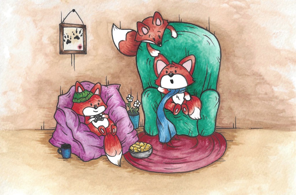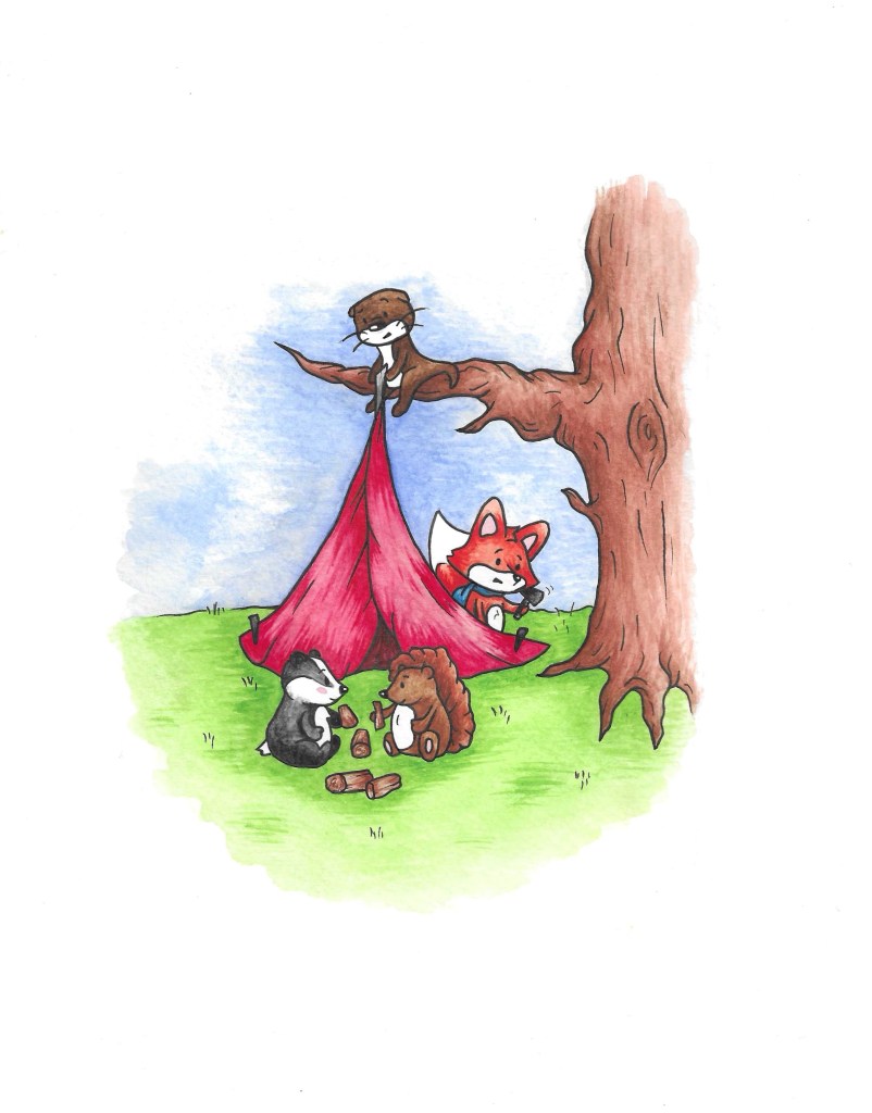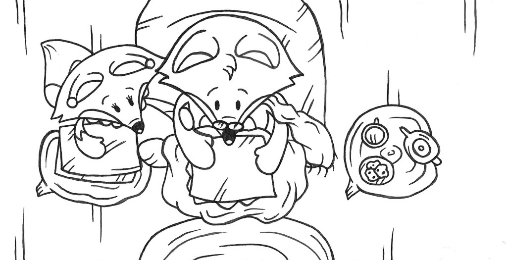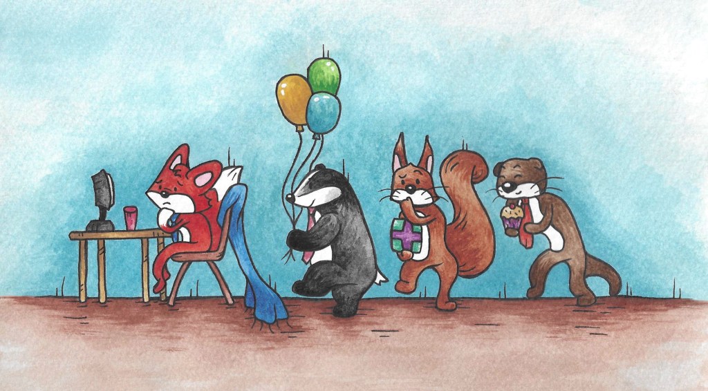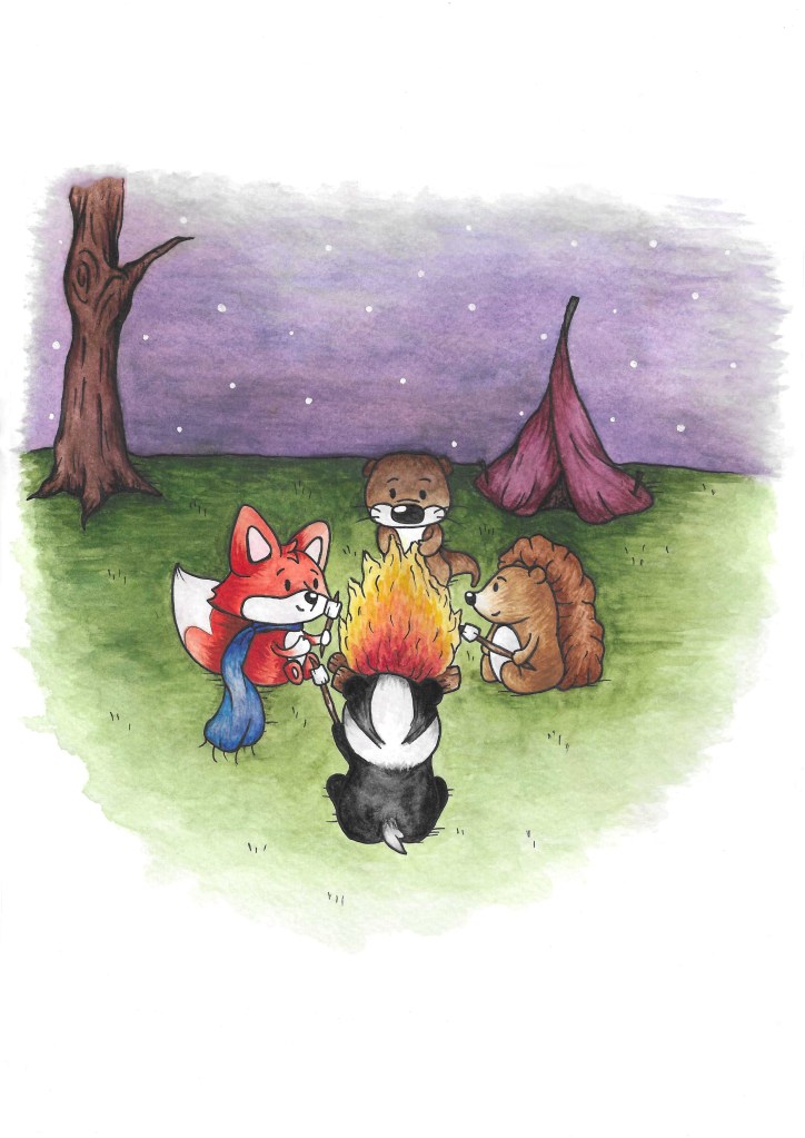 In summary the story is about an old fox who is with his family and friends and he shows them a photo album of his life. I worked a lot on creating an interesting narrative structure. The structure I chose has 3 layers, the present scene, the photo album and the memories. The narrative starts with the current scene then jumps back and forth between the photo album and the memories and eventually returns to the current scene. I think the last page is particularly important for the narrative as the present scene becomes a photo in the album.