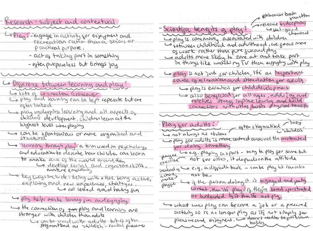 Prompted by the session, I did some subject and contextual research. I looked at the definition of ‘play’, the differences between learning and play, the scientific benefits of play and play for adults. All the research and ideas are below: