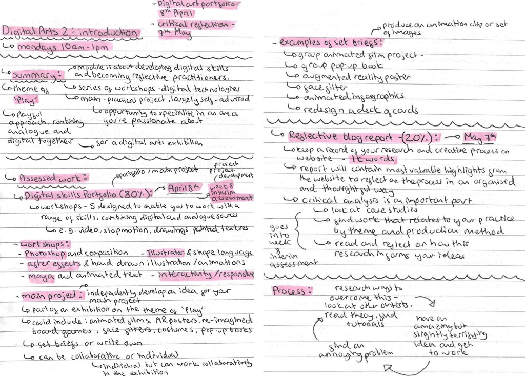 In this session we were introduced to the Digital Arts 2 Module. Below are the notes I made about the Module aims, the briefs, assessment criteria and deadlines.