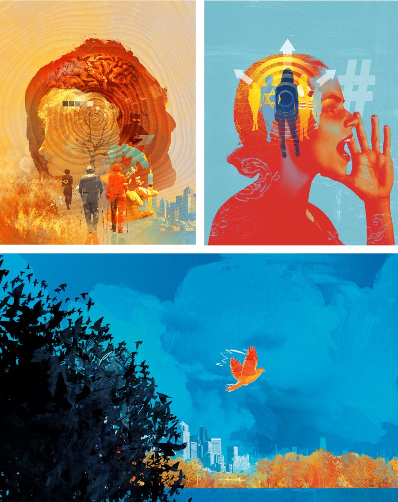 We looked at some examples of creative practices with a focus on composition and mixed media digital collage. Some of the artists that I looked at in the first week produce work in this style such as Chris Haughton, Tim Marrs and Kate Miller. Below are a list of artists who produce work with interesting compositions and use of mixed media digital collage. This is a style I really like but not something I regularly produce so this workshop was a great opportunity for me to push myself and explore this style of work.