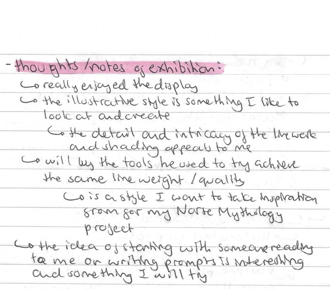 Fantasy Realms of Imagination: this was another exhibition at the British Library. I wasn’t able to visit it on the day as the tickets where all sold out but I have booked tickets to go at a later date as I feel like the topic and style could provide good inspiration for my Norse Mythology project.