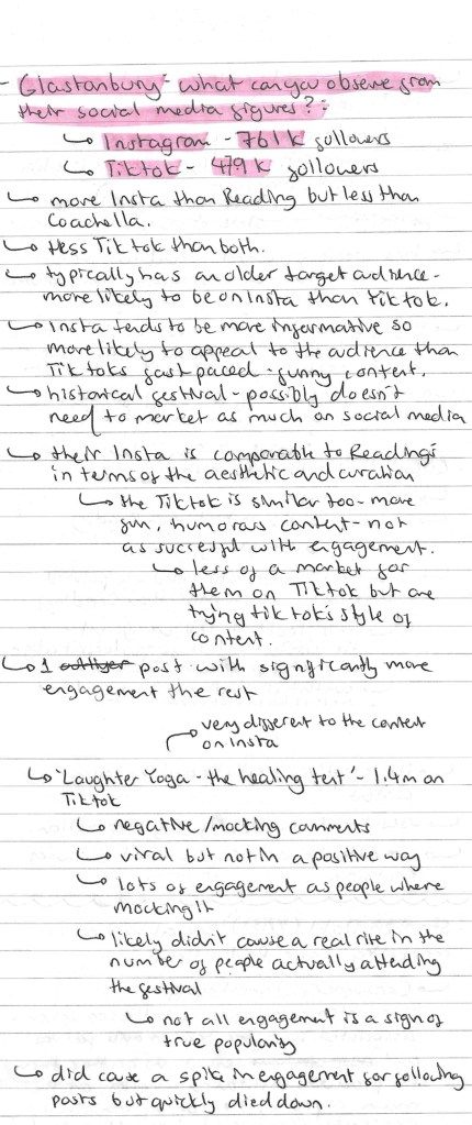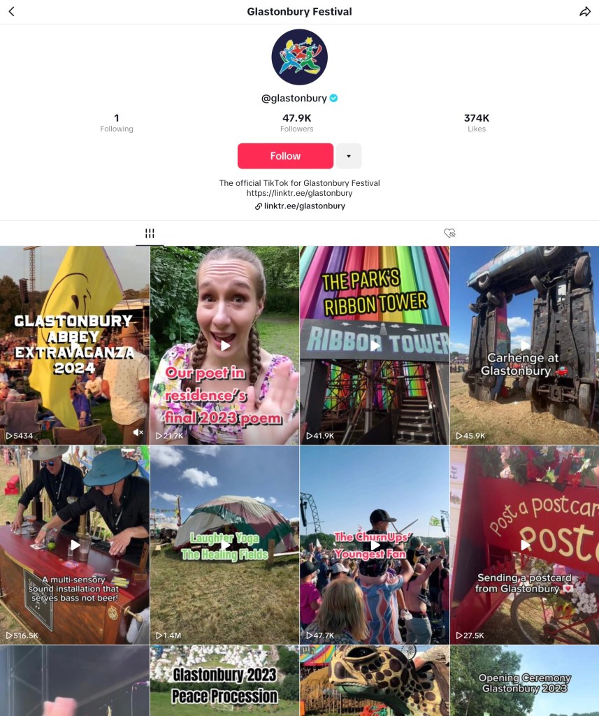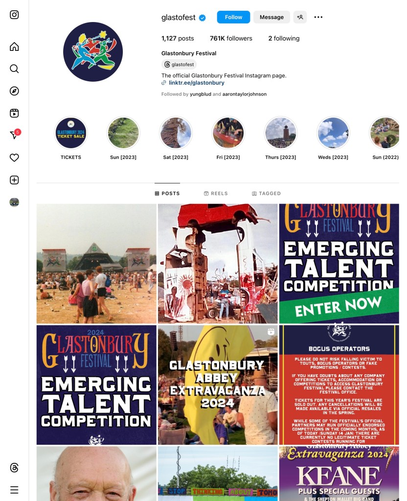 Comparing different social media platforms: Glastonbury Instagram vs Glastonbury TikTok: