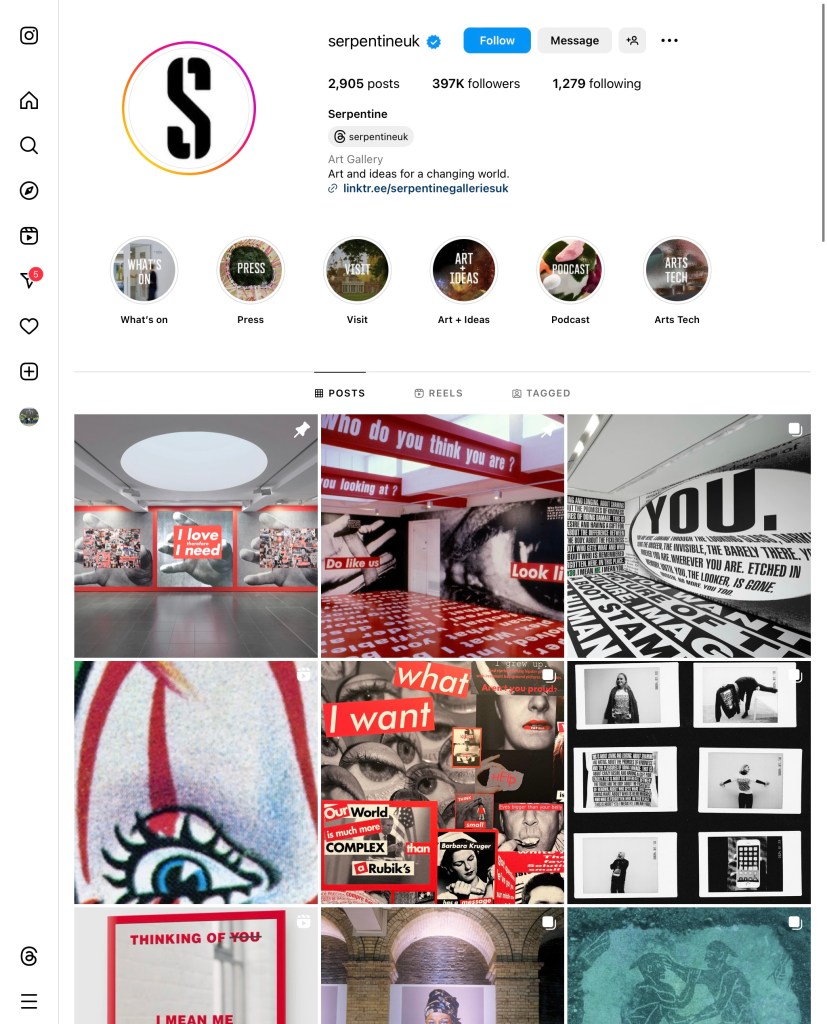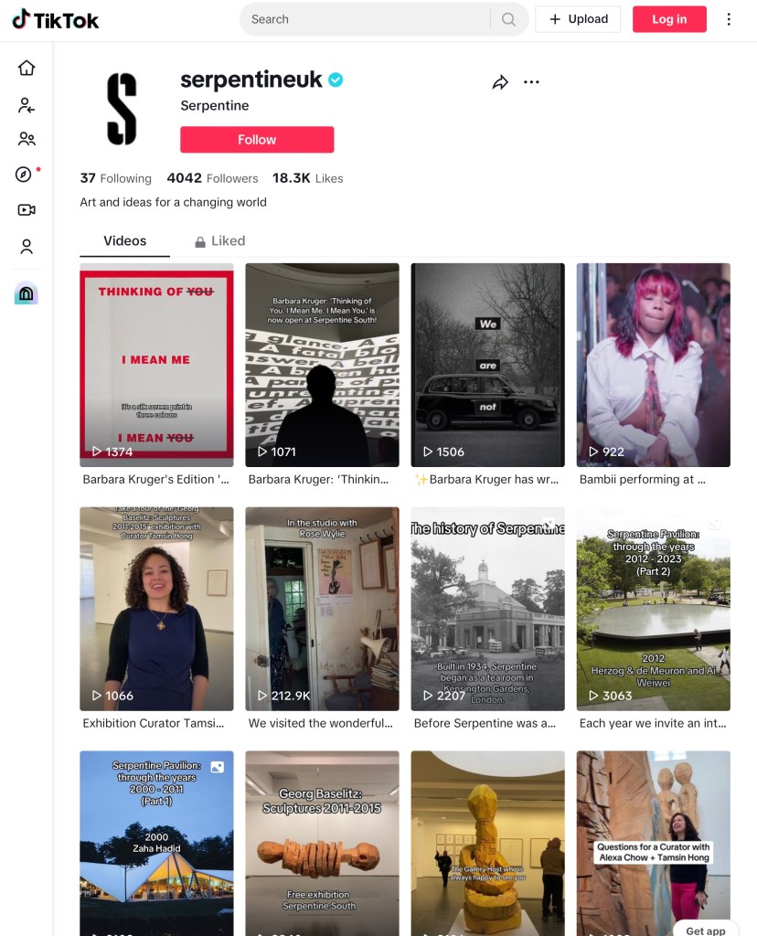Comparing different social media platforms: Serpentine Gallery Instagram vs Serpentine Gallery TikTok: