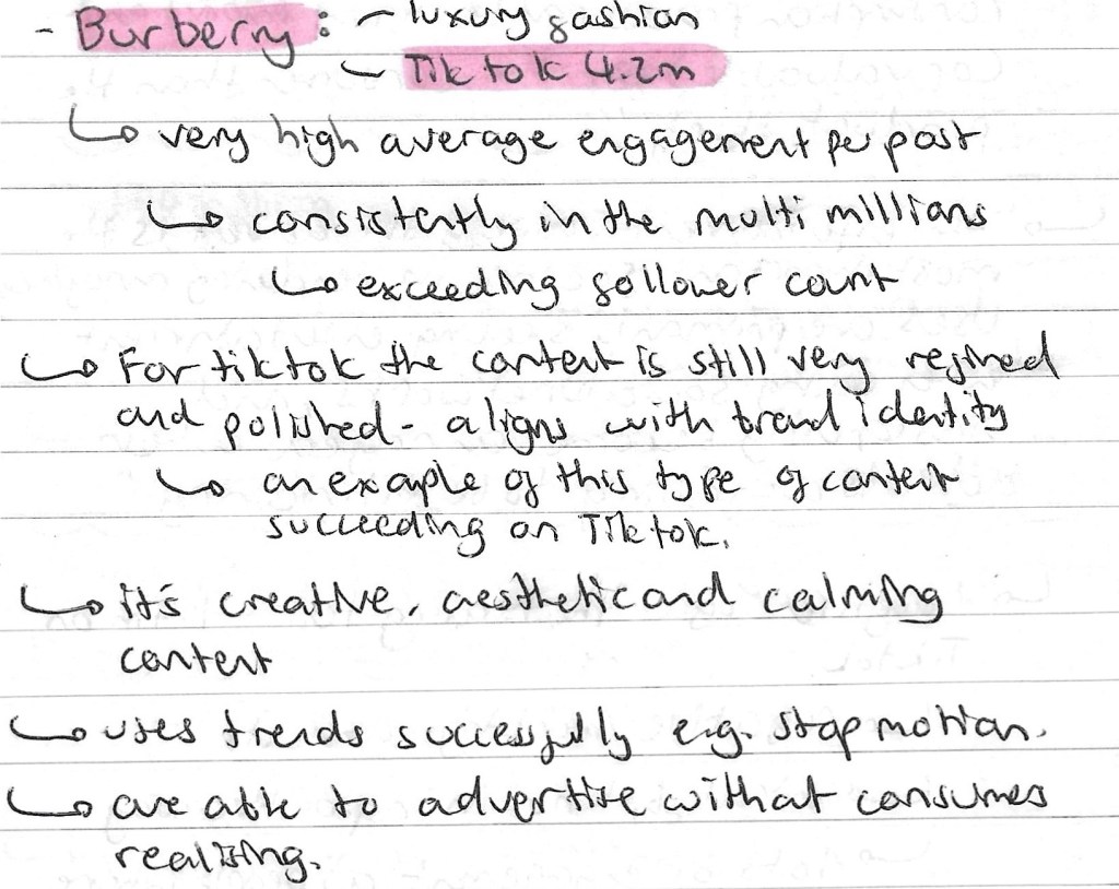 Comparing different areas: Burberry TikTok vs Hypnomotion TikTok: