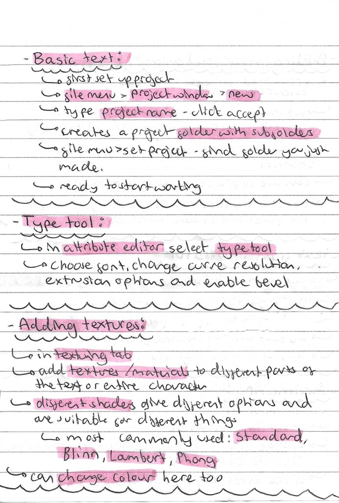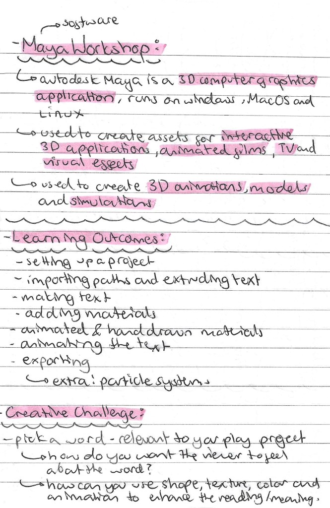 Reflection: Overall, this was my least favourite of the workshops. I found Maya challenging and not a particularly enjoyable software to use. I did find researching artists who work within this field interesting and found some whose work appeals to me but generally this is not an area of visual art that I really like. For this reason I don’t plan to incorporate 3D lettering animation into my project. I prefer more hand made and traditional styles on animation such as stop motion and frame by frame drawing.