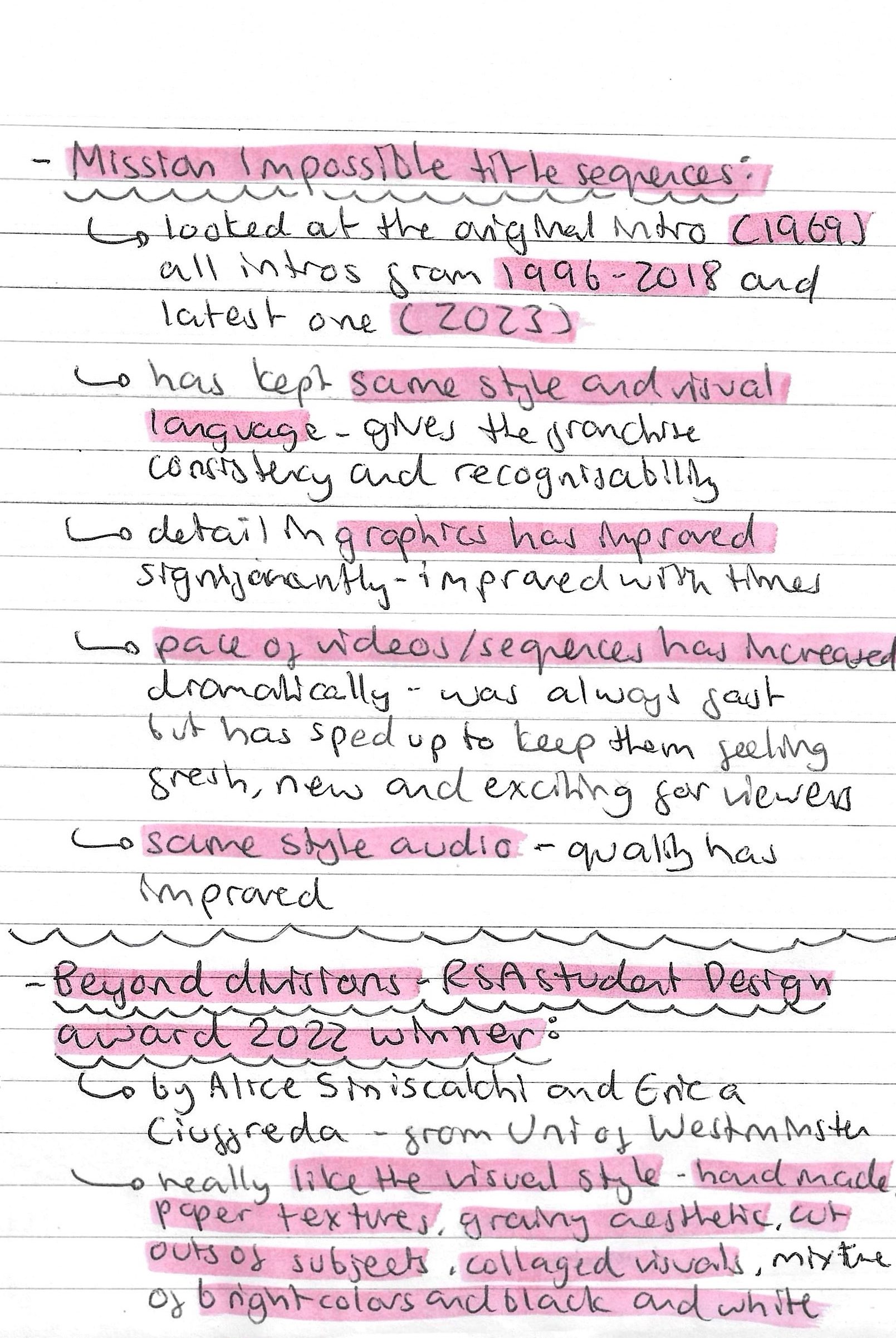 Mission Impossible title sequence: this was an interesting example to look at as it has developed a lot from its original in 1969 to its most recent one from 2023. The style and visual language has remained the same which has helped give the franchise its recognisable visual identity. The quality of the visuals has improved significantly with the advancements in digital technology available. The most noticeable change is the pace of the sequences increasing. The originals were seen as fast but now they’re dramatically quicker. This helps keep the, feeling fresh and exciting to viewers. This is a great example of a sequence that has maintained its visual identity while still evolving to meet the current demands.