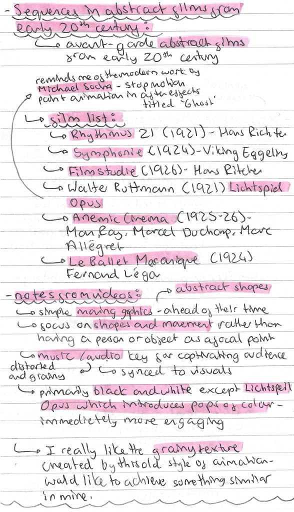 Sequences in abstract films- early 20th century: our second activity was to look at a range of avant-garde abstract films from the early 20th century. Here is a list of the films we watched and some notes I made about them: