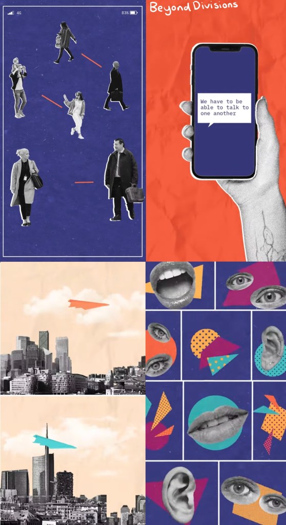 Beyond Divisions: this is a Student Design award winning piece from 2022. I really like the visual style of this video. It has hand made paper textures, grainy textures, paper cut outs all put together in a collage format. Also the use of bright colours against greyscale images is a really effective colour palette as it helps guide the eye to the important parts. The combination of visual styles is something I would like to try use in my project work.