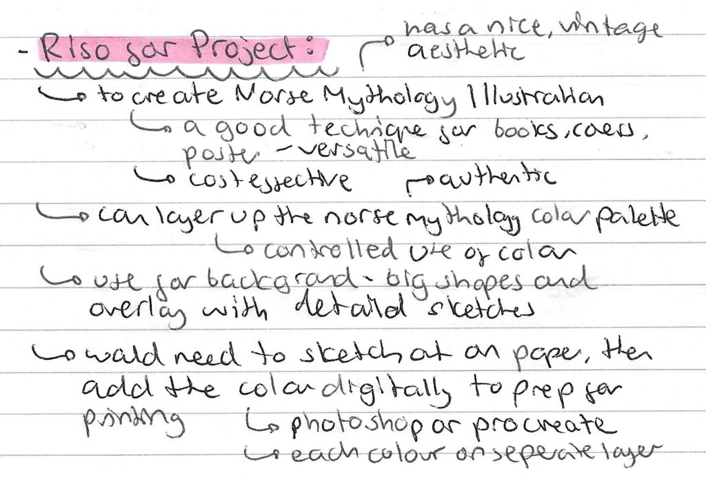 After researching different printing techniques I decided that I wanted to use Riso printing for my Norse mythology illustrations. As I had never used the Riso printer before I had to book in for an induction. Before the induction I did some research to learn a bit about Riso printing so I would have some basic knowledge going into the induction. Some interesting things I learnt can be seen below: