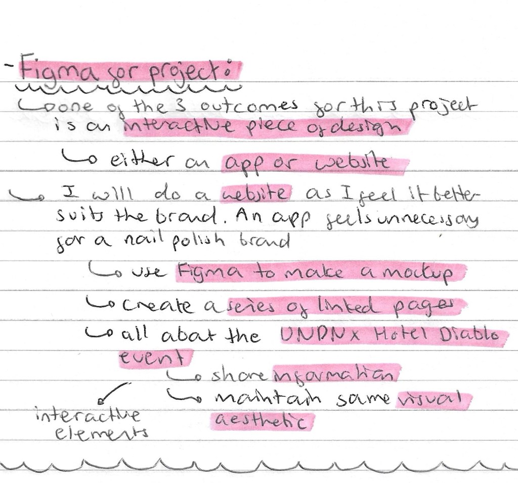 I feel that I’ve learnt a lot about Figma and how to use it from the introduction in class and my own research. I will be using it to create my interactive piece for my UN DN X Hotel Diablo event. We have the option to either make a mockup for a website or app. I’ll be doing a website as I feel it’s more relevant to the type of event I’ll be creating. The important things to keep in mind when it comes to creating this will be that it needs to use the relevant and useful information, maintained the visual identity of the event and includes interactive elements. These can be easily added into a Figma design by using the prototype tab and creating connections between 2 pages.
