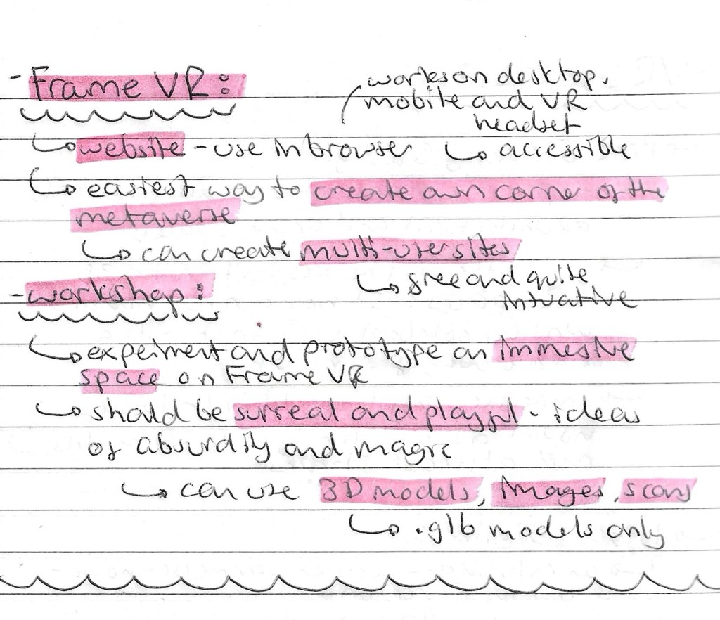 Frame VR: I’d never use Frame VR or anything similar so this kind of technology was completely new to me.