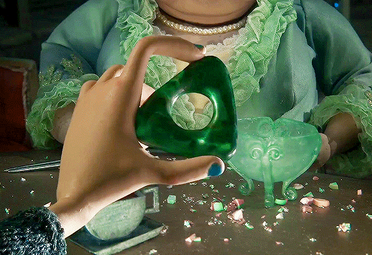 Augmented Reality (AR): I want to integrate the idea of this green amulet from the movie into the experience. Using AR technology the audience hold their phone up around the ‘real world’ and it will show them all the beautiful possibilities of the ‘other world’. The striking contrast bewteen what they’d see in person and through their phone would tempt them into the ‘Other world. This plays on the idea of deception and illusion.