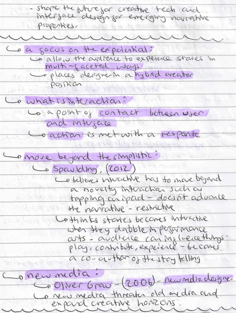 Joseph Campbell’s ‘The Hero’s Journey’: describes the common heroic storytelling narrative in which a heroic protagonist sets out, has transformative adventures, and returns home. This storytelling format is being challenged by more audience centric narratives utilising new interactive technologies.