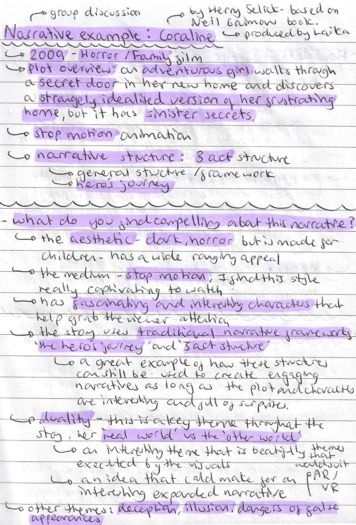 Coraline narrative experience: