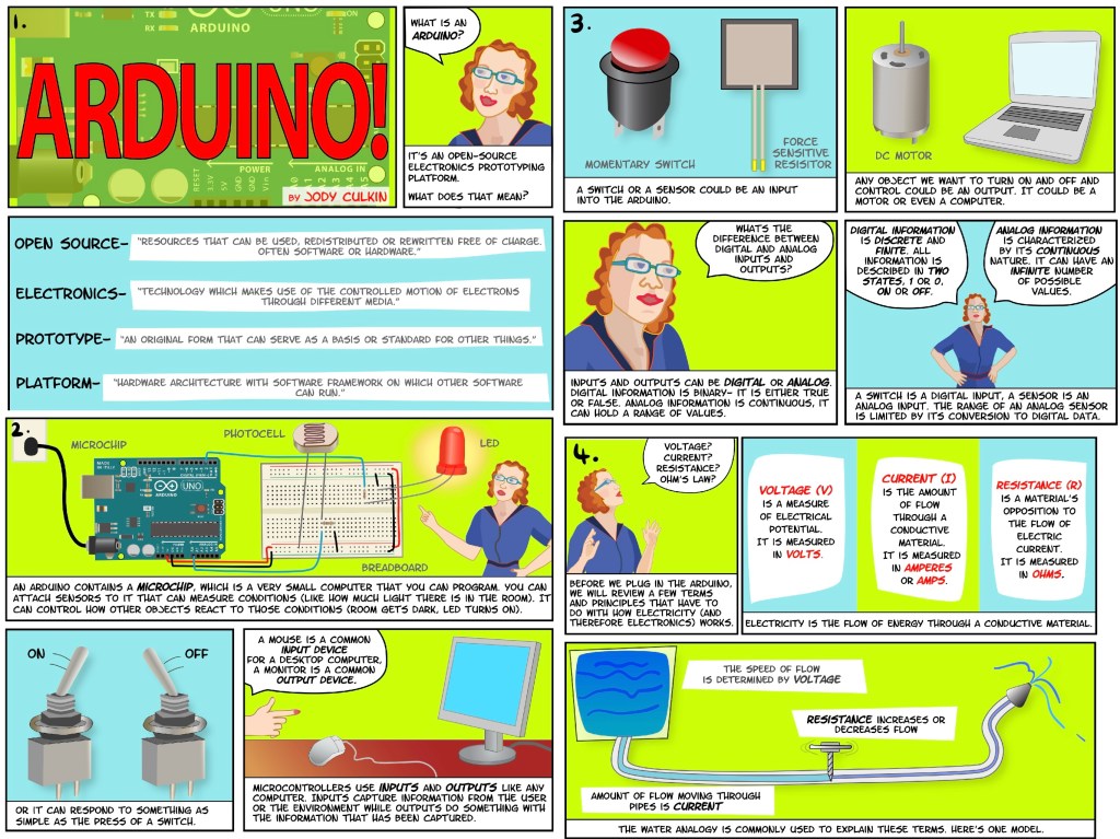 ’The Arduino Comic’ by Jody Culkin: this comic is a brief introduction into Ardunio, an open source electronics prototyping platform.