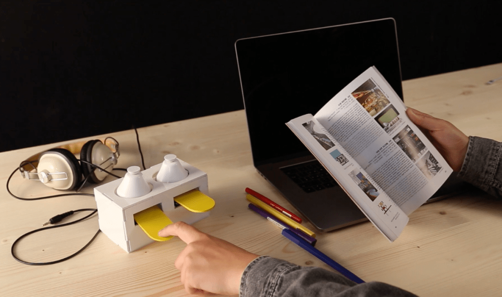 ‘Twin Objects – Devices for Long Distance Relationships’ by Elise Migraine: Twin Objects is a collection of devices designed to act as a ‘hotline’ in attempt to nurture intimacy that long-distance relationships can lack. It is a playful solution to enhance the experience of instant messaging. It consists of two buttons which react to each other’s positions. When one button is pressed down, it causes the other twin button to move up creating a physical, interactive experience.