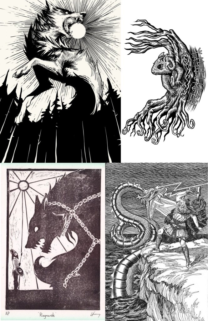 Here are a range of artworks about the topic of Norse Mythology. They’re a starting point for my ideas about the Illustration Project. At this stage I haven’t looked into any specific artists, I just did a broad search on Google and Pinterest to collect visual media that interested me. I immediately noticed that there will be big range of style ranging from, fine black line work to highly detailed colour images. This gives me lots of ideas to take inspiration from.