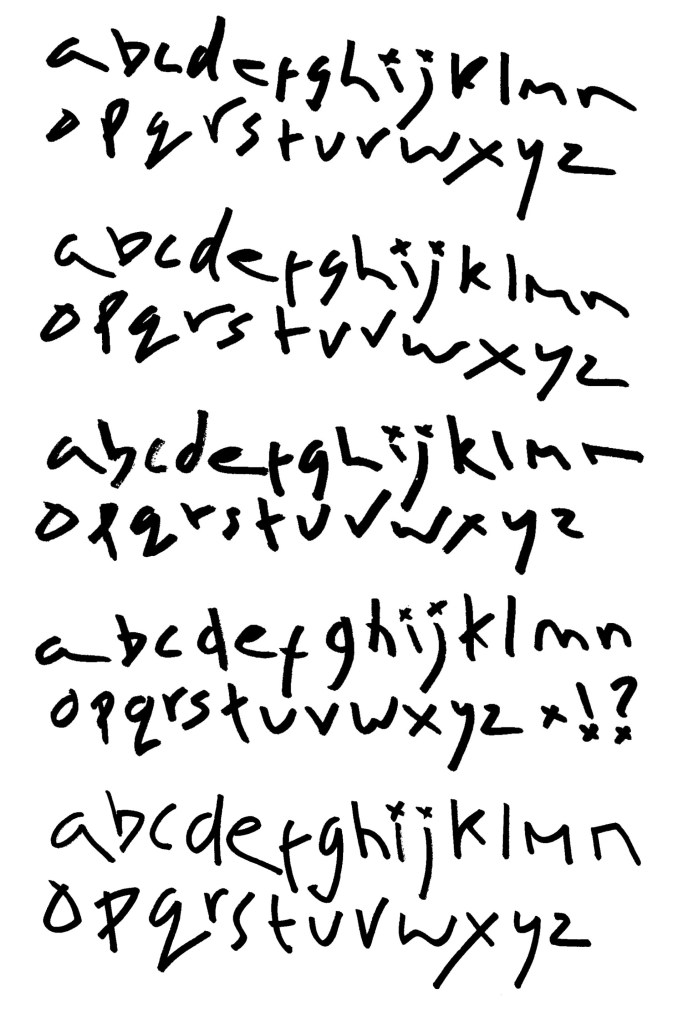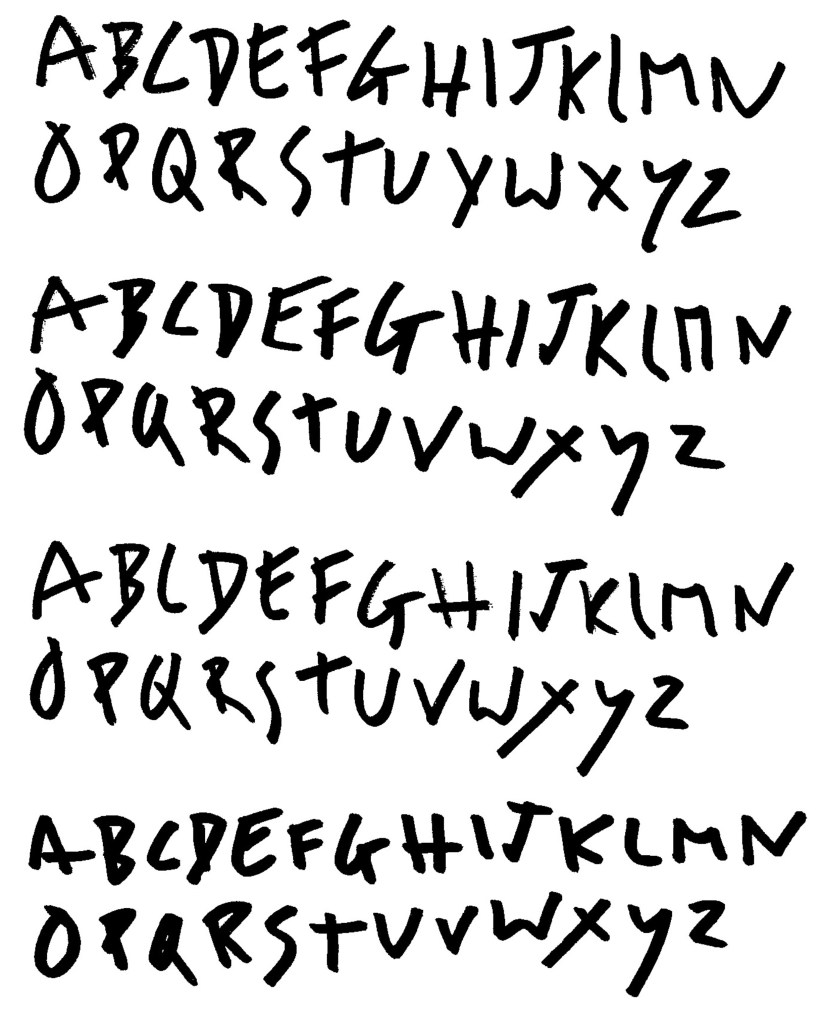 Hand written typefaces: I made these typefaces using a thick marker pen. They’re inspired by the hand written style on Hotel Diablo but are more bold and have a stronger line weight, similar to those used by UN DN. I want a loose, rough style so they are stylised versions of my own hand writing to make them feel natural and not too forced or perfect. These typefaces build on the styles I developed in the action and interaction activity where I worked on the song ‘Bloody Valentine’ by MGK.