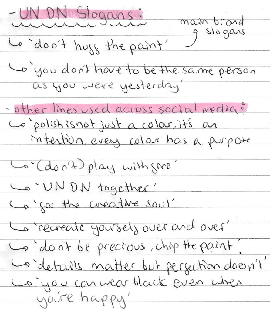 UN DN slogans: during my brands research I found a selection of intending slogans, quotes and captions from their social media pages . These could be good to include in my project work as I want to keep the style of language consistent to their actual style. Below are some of my favourites: